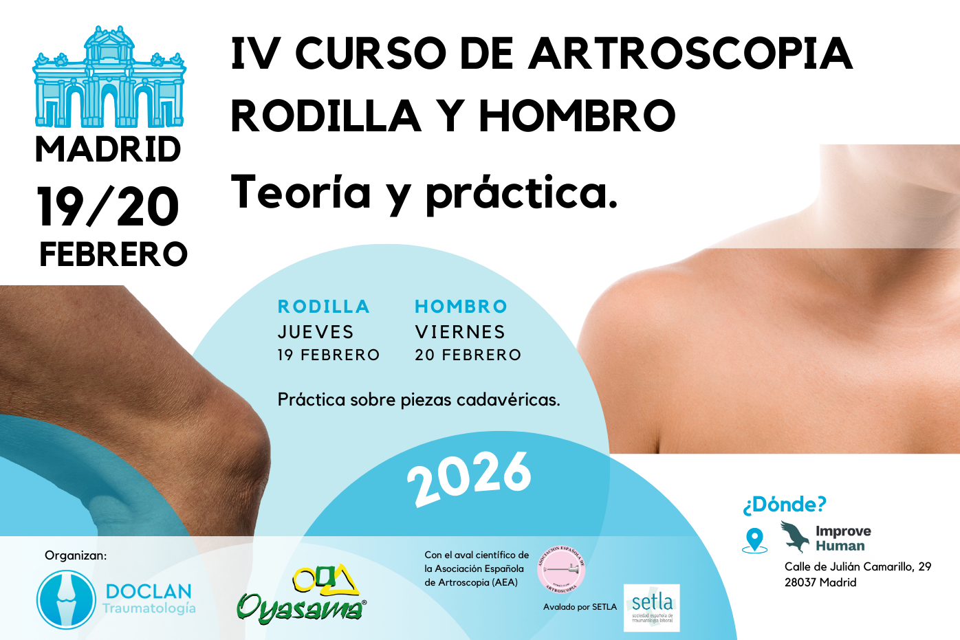 ✅ Este destacado evento está organizado por Doclan Traumatología, junto con Oyasama y se llevará a cabo los días 19 y 20 de febrero de 2026 en Improve Human, Madrid. Con el aval científico de la Asociación Española de Artroscopia (AEA) y avalado por SETLA.